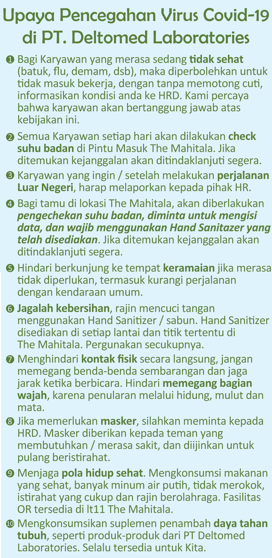 PT Deltomed kini mengembangkan fasilitas manufakturnya di Wonogiri, Jawa Tengah dengan menggunakan Quadra Extraction System ( mesin berteknologi Jerman yang dapat menghasilkan ekstrak bahan alami dengan kualitas terbaik). Di tahun 2018, PT Deltomed membangun gedung kantor 10 lantai yang berlokasi di Alam Sutera, Tangerang yang dikenal dengan nama gedung “The Mahitala”.