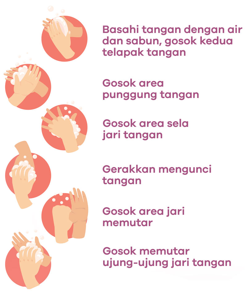 - Rutin cuci tangan dengan air mengalir dan sabun atau hand sanitizer